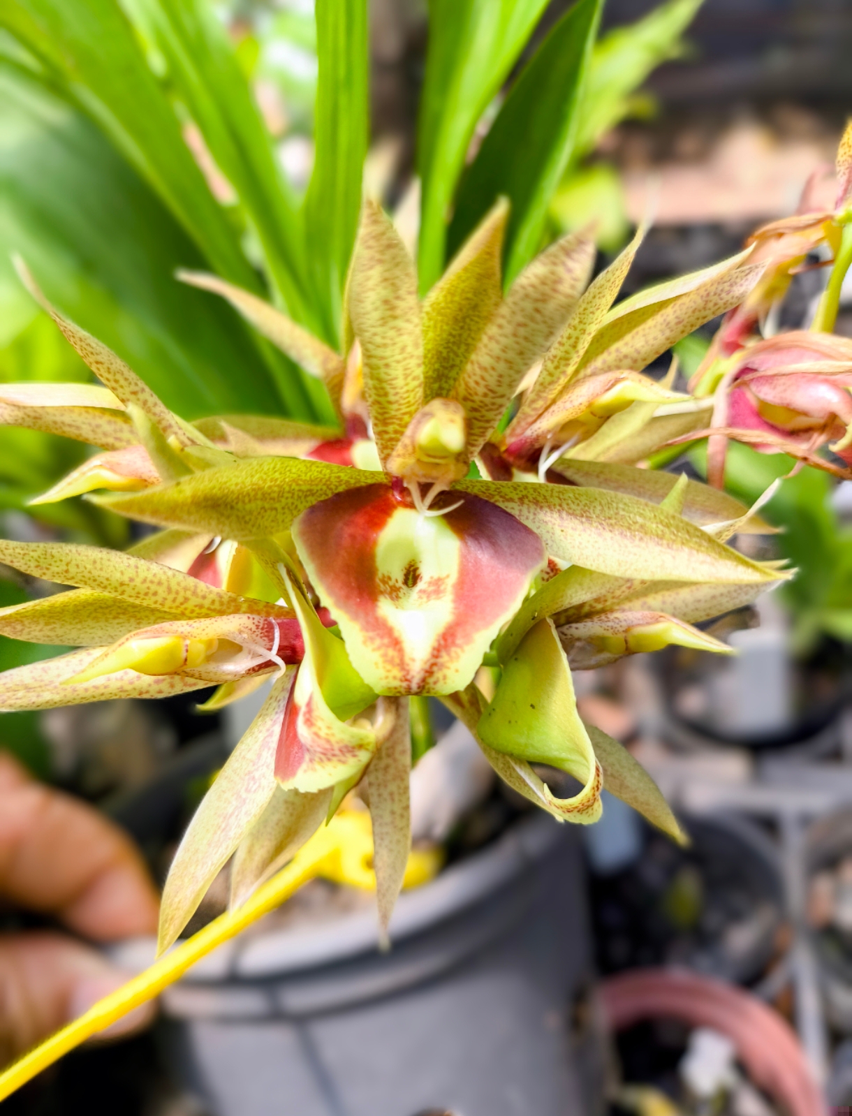 Conhecida por sua floração espetacular e flores com formatos e cores intrigantes, a linhagem Catasetum é uma das mais desejadas por colecionadores. Este híbrido em particular promete combinar as características únicas de ambas as matrizes:
