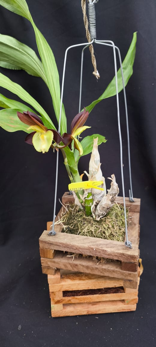Oportunidade Única: Orquídea Catasetum Pearl Jam Amarelo no Cachepo de Madeira de Lei - Adulta
