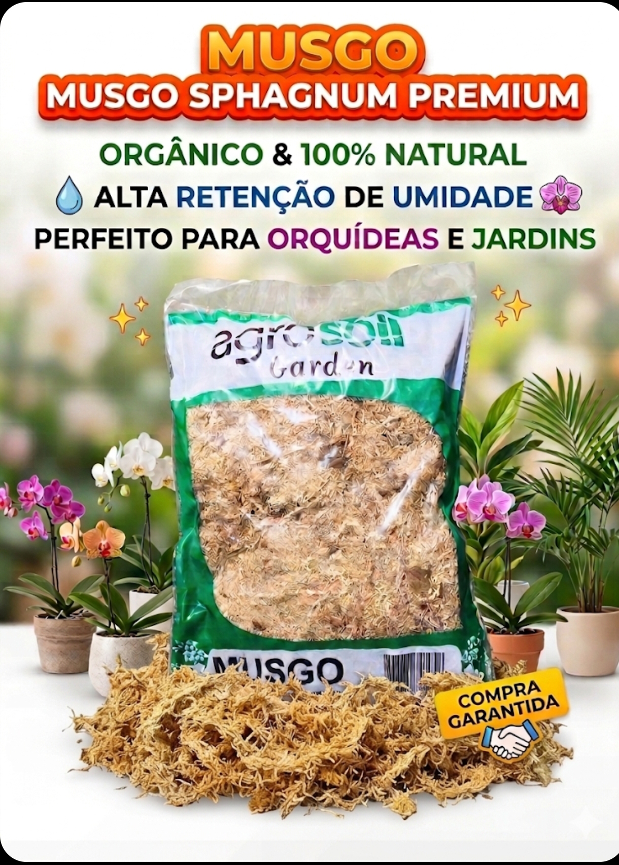 Musgo Sphagnum Esfagno Premium - 3 Litros (Substrato Especial) Transforme a saúde das suas plantas com o melhor substrato do mercado! O Musgo Sphagnum (Esfagno) Premium é a escolha número 1 de colecionadores de Orquídeas e Plantas Carnívoras. Com alta capacidade de retenção de água e nutrientes, ele garante o ambiente úmido e aerado que suas raízes precisam para crescerem fortes e saudáveis. O que você vai receber? Quantidade: 3 Litros de Musgo Sphagnum Desidratado. Rendimento: Volume ideal para preencher vários vasos médios ou compor diversos terrários. Por que escolher o nosso Musgo Premium? Máxima Absorção: Retém até 20x o seu peso em água, mantendo a umidade ideal por muito mais tempo. Livre de Impurezas: Musgo selecionado, limpo e com fibras longas. Versatilidade Total: Ideal para orquídeas, plantas carnívoras, kokedamas, terrários, alporquia e germinação de sementes. Propriedades Naturais: Possui pH ideal e propriedades fungicidas naturais que protegem as raízes contra o apodrecimento. Sugestões de Uso: Orquídeas: Excelente para fixar em troncos ou misturar ao substrato para manter a umidade. Plantas Carnívoras: O substrato base indispensável para espécies como Dionaea e Drosera. Terrários: Ótima camada de retenção hídrica e acabamento estético natural. Alporquia: Facilita o enraizamento de mudas de forma rápida e segura. Dúvidas Frequentes: O musgo vem úmido ou seco? Ele é enviado desidratado (seco) para garantir a conservação e facilitar o transporte. Ao hidratar, ele recupera seu volume natural. O envio é imediato? Sim! Temos estoque próprio e enviamos em até 24h úteis após a confirmação da compra. Posso usar em qualquer planta? Sim, especialmente naquelas que amam umidade constante nas raízes. Garanta já o substrato que suas plantas merecem! Adicione ao carrinho e aproveite o frete. Garantia do vendedor: 20 dias